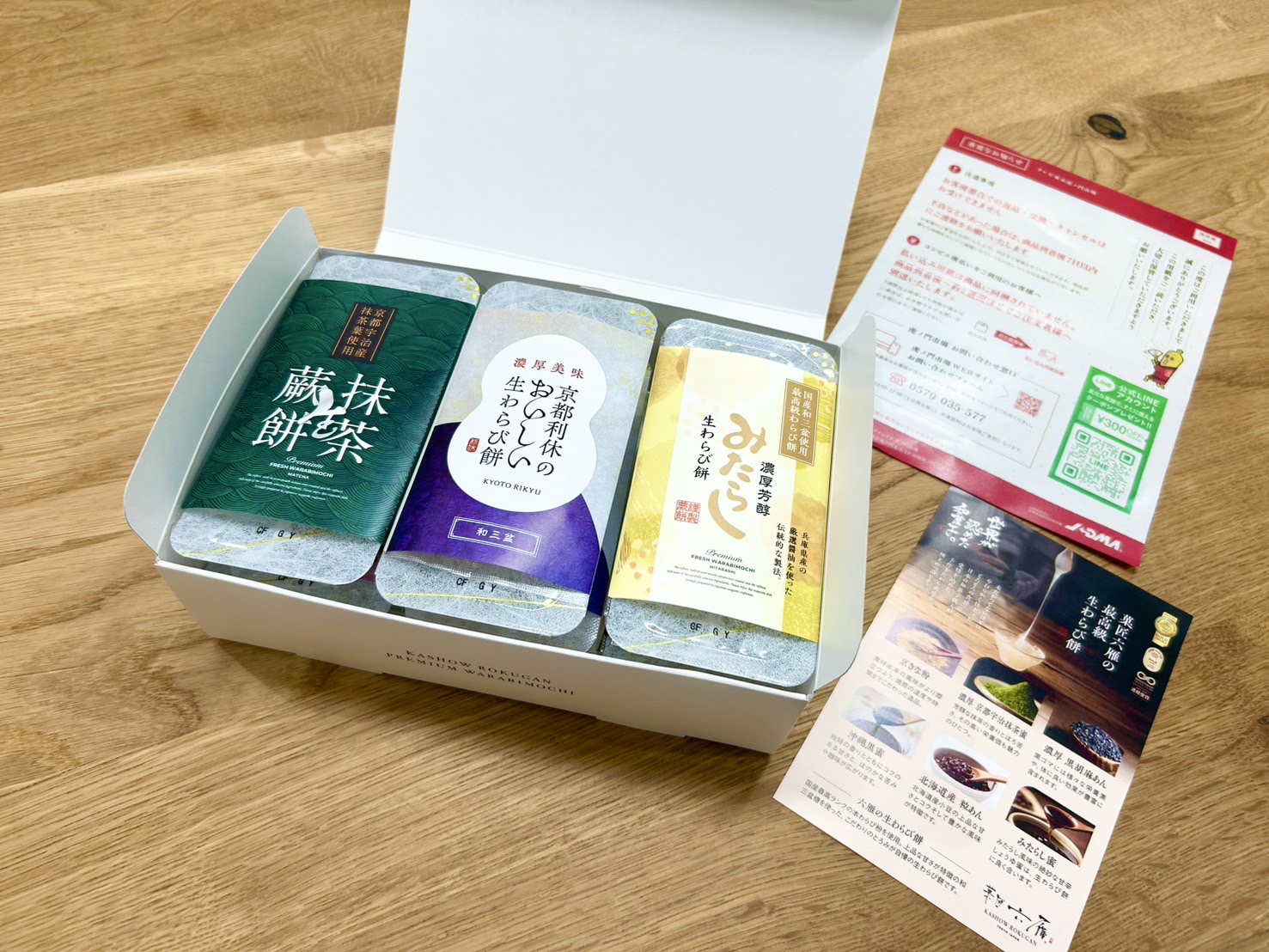 当社は、全国200店舗以上のフランチャイズを展開し、百貨店や高級スーパーなどでも取り扱われる「菓匠六雁の生わらび餅」を提供しています。