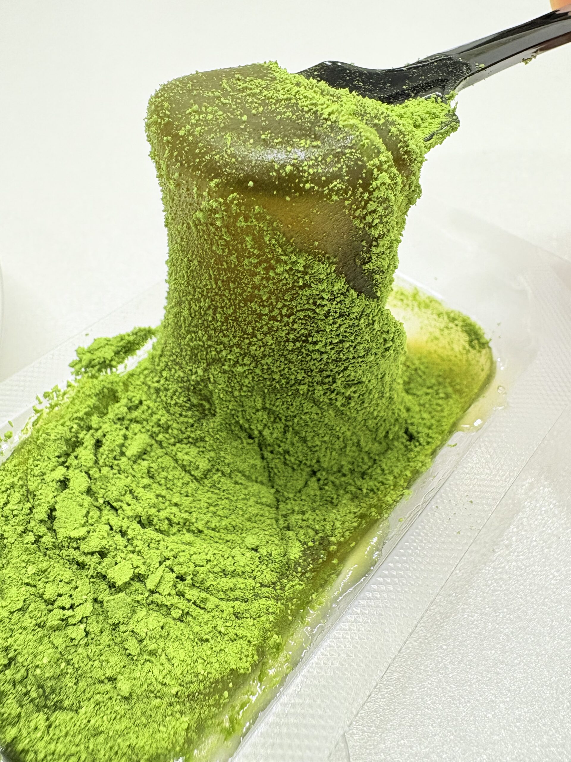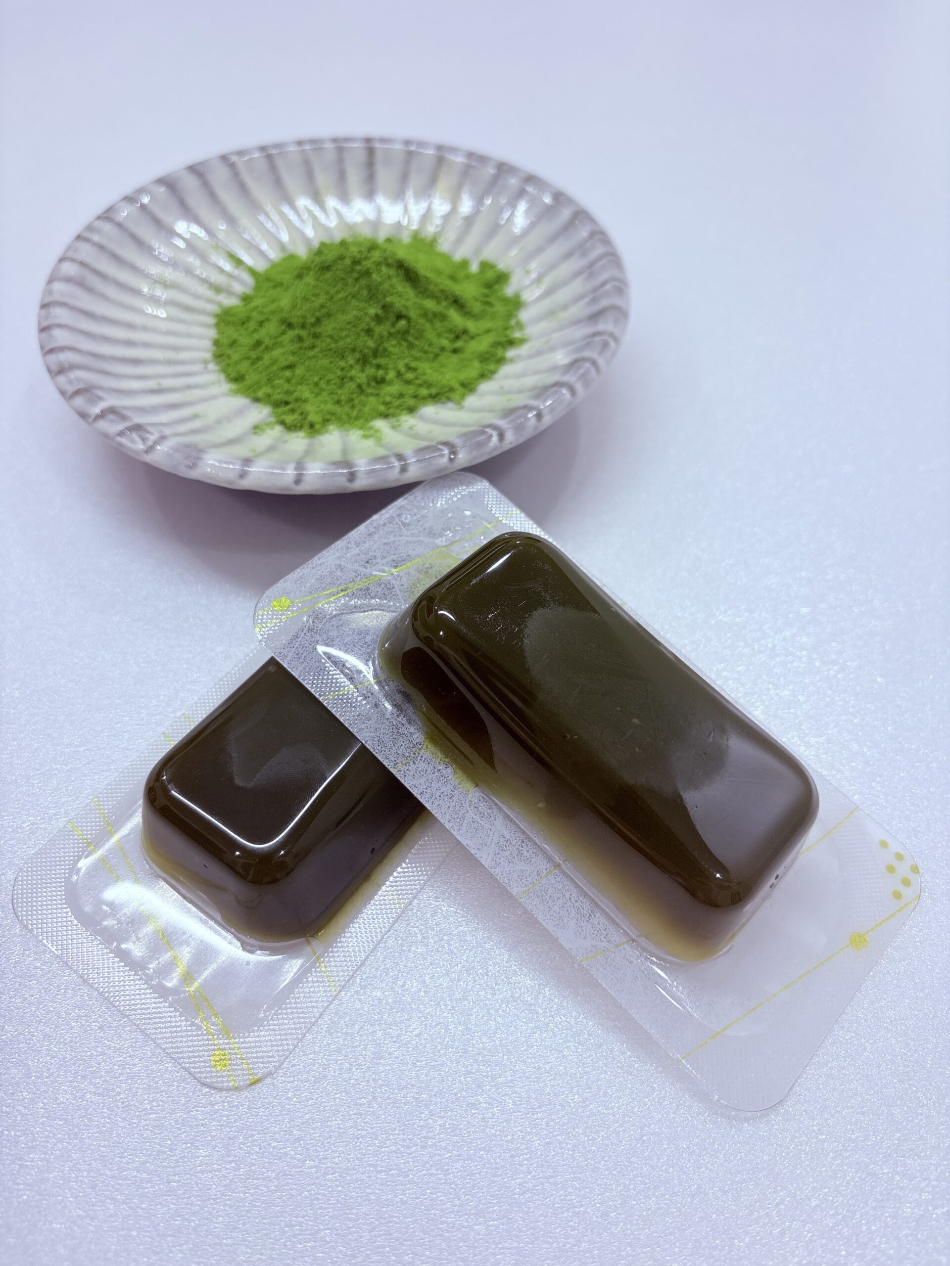 特徴: 厳選された本場「宇治抹茶」を使用。わらび餅に抹茶を練り込み、さらに仕上げにも抹茶をまぶすことで、抹茶の香りとほろ苦さを追求しました。